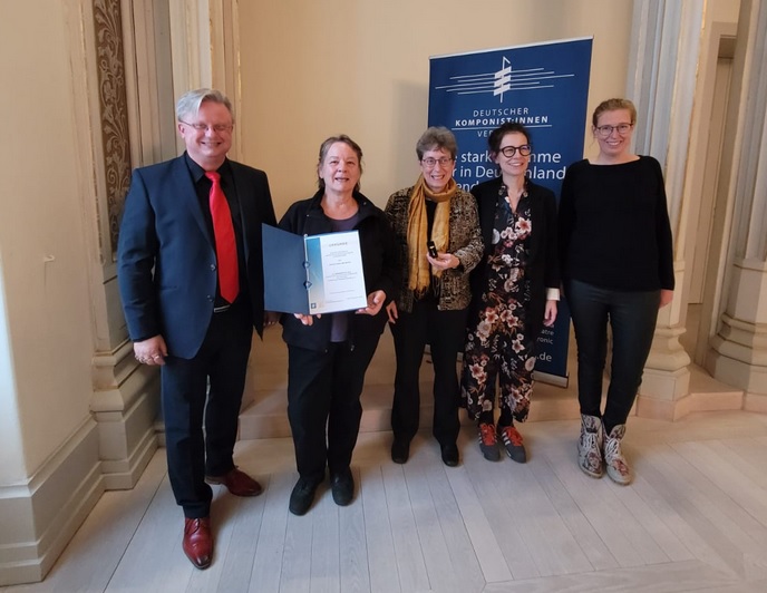 „Am vergangenen Freitag wurde im Rahmen der Donaueschinger Musiktage die FEM-Nadel an das Archiv Frau und Musik verliehen. Mit der FEM-Nadel zeichnet die Fachgruppe E-Musik des Deutschen Komponist:innenverbandes jedes Jahr Persönlichkeiten/Institutionen aus, die sich vorbildlich um die Sache der zeitgenössischen Musik verdient gemacht haben. Damit will die Nadel zum kulturpolitischen, sozialen wie künstlerischen Engagement inspirieren, wie es die mit der Nadel Geehrten an den Tag legen.