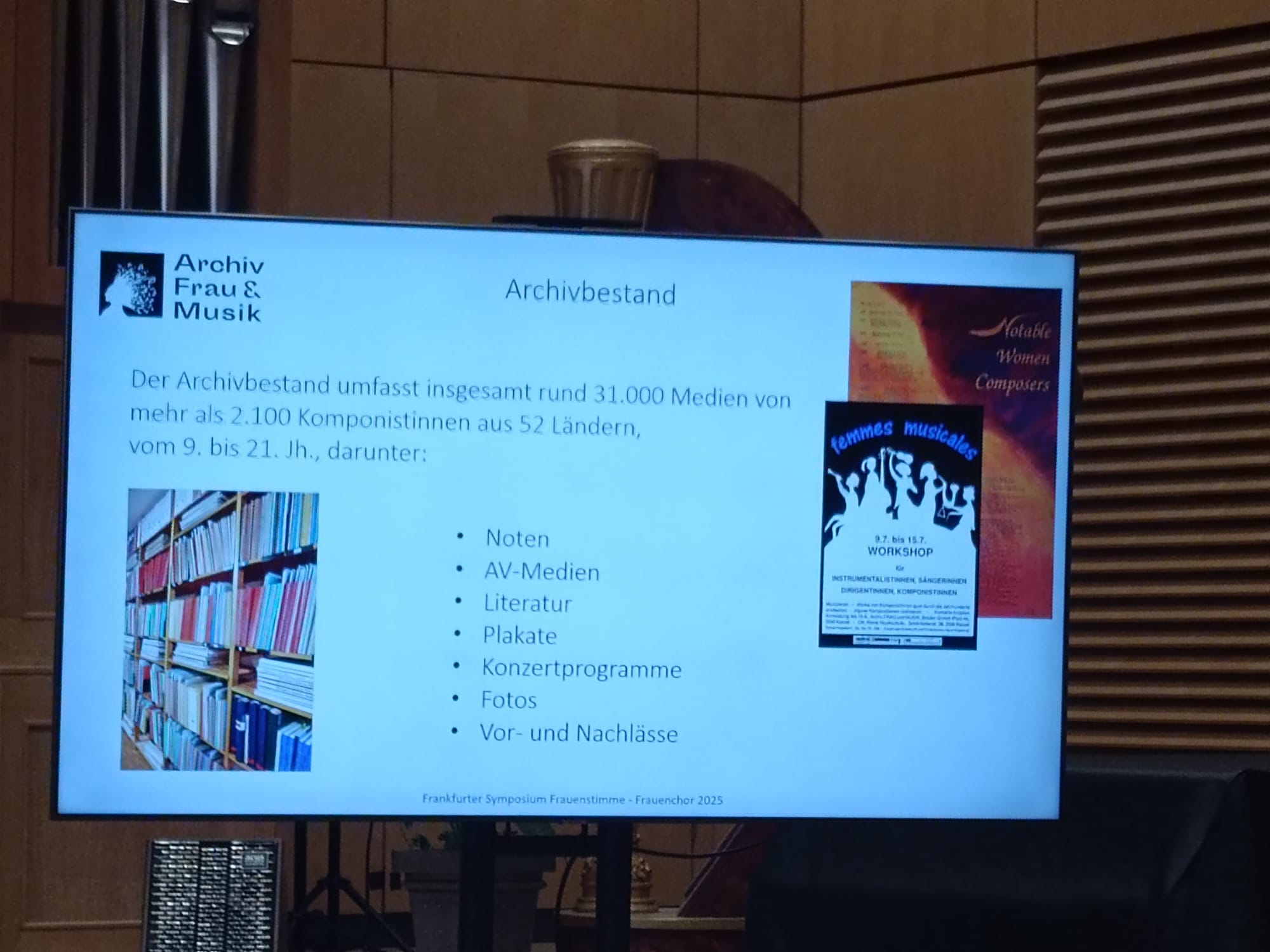 Am vergangenen Wochenende fand – organisiert vom Landesverband Hessen/Rheinland-Pfalz/Saarland (Verband Deutscher KonzertChöre VDKC) – in Dr. Hoch’s Konservatorium in Frankfurt/Main das Symposium Frauenstimme – Frauenchor über zwei Tage statt. Wir waren eingeladen gewesen als Kooperationsveranstaltung mit unserer Expertise zu Komponistinnen für einen Informationsstand und einen Vortrag, den unsere Expertin Bettina Weber hielt, die auch selbst als Chorkomponistin arbeitet.