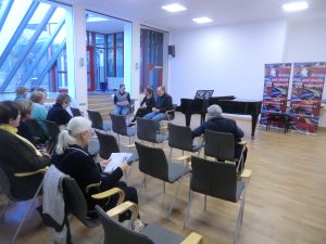 Für die Mitglieder stellten wir vor allem unsere Mitwirkung im Digitalen Deutschen Frauenarchiv (DDF) vor mit einem Vortrag, den wir bereits im September bei der Feministischen Sommeruni des DDF in Berlin vor hochinteressiertem Publikum hielten. Als besonderen Leckerbissen zeigten wir den neuen und bereits in Los Angeles als „bester Film von oder über eine Frau“ (AliveDocFestival) ausgezeichneten Dokumentarfilm Komponistinnen in Anwesenheit der Filmemacher*innen Kyra Steckeweh (Pianistin, Leipzig) und Tim van Beveren (Berlin), die diese großartige Doku initiiert und in mehreren Jahren Arbeit ausgearbeitet haben – eine Fortsetzung ist bereits geplant. Darin werden die mehr oder weniger bekannten Komponistinnen Fanny Hensel, Lili Boulanger, Mel Bonis und Emilie Mayer in spannenden 95 Minuten portraitiert. Auch in unserem Archiv wurde dazu gedreht und unsere Vorstandsfrau Mary Ellen Kitchens im Archiv sowie unsere freie Mitarbeiterin Susanne Wosnitzka in Rom dazu interviewt (ab November 2018 in ausgewählten Kinos zu erleben).