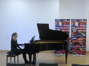 Als Dankeschön für unsere Arbeit erhielten wir von Kyra Steckeweh auch ein selbstgezeichnetes Bild der jungen Fanny Hensel nach dem Original von Wilhelm Hensel. Kyra Steckeweh und Tim van Beveren versteigerten ein paar dieser Abbilder im Mai 2018 zur Premiere ihres Dokumentarfilms. Dieses Fanny-Bild ersteigerte Anne Holler-Kuthe (im mfm-Vorstand), die es Kyra Steckeweh zurückschenkte. Daraus entstand dann die Idee, es in unser Archiv einzubringen. Anschließend trug Kyra Steckeweh ausgewählte kleine Werke von Lili und Nadia Boulanger vor, über die ebenfalls interessiert diskutiert wurde.